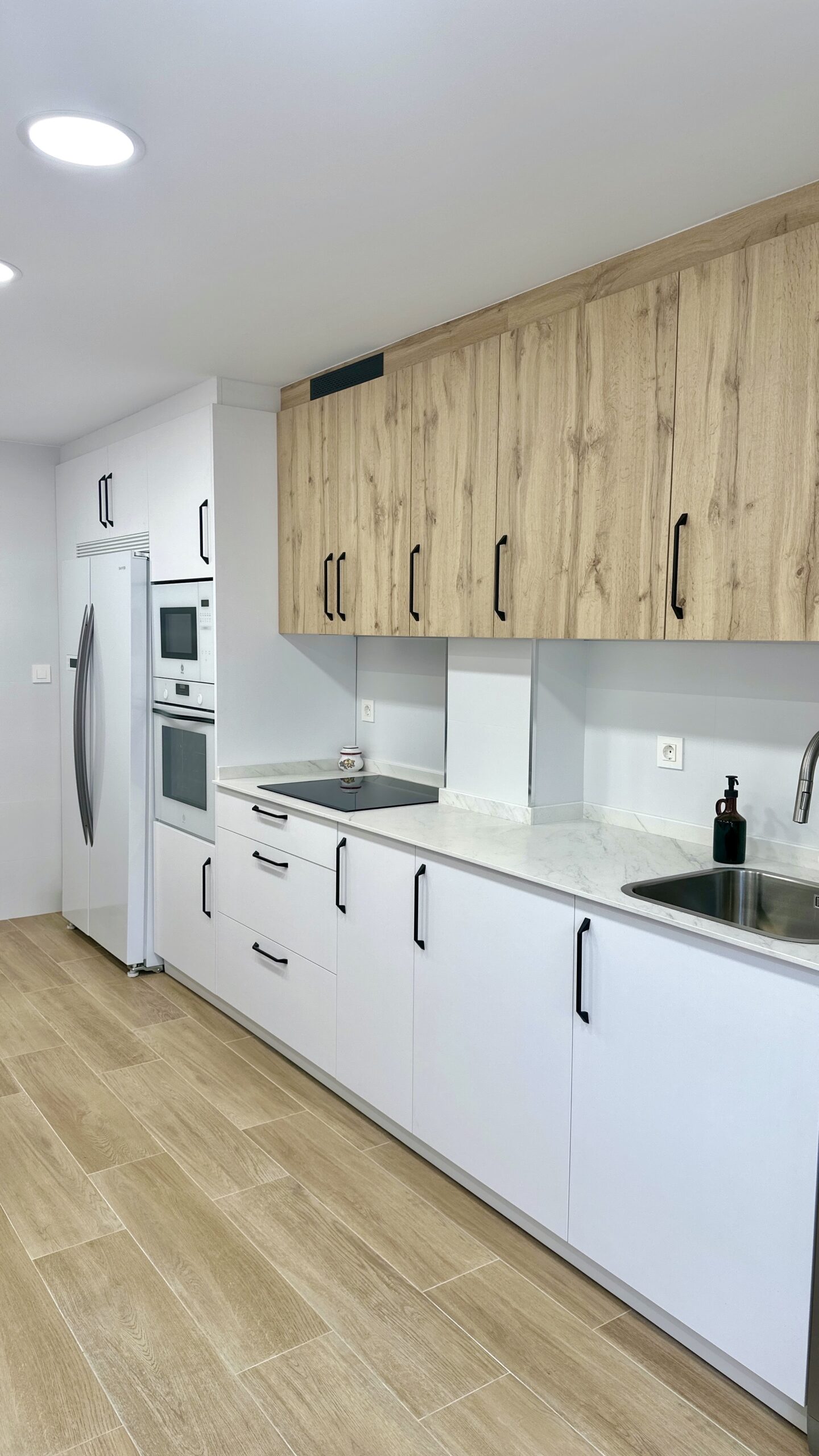 En esta cocina lo interesante a destacar es la columna donde se oculta la caldera y el tubo de salida.
