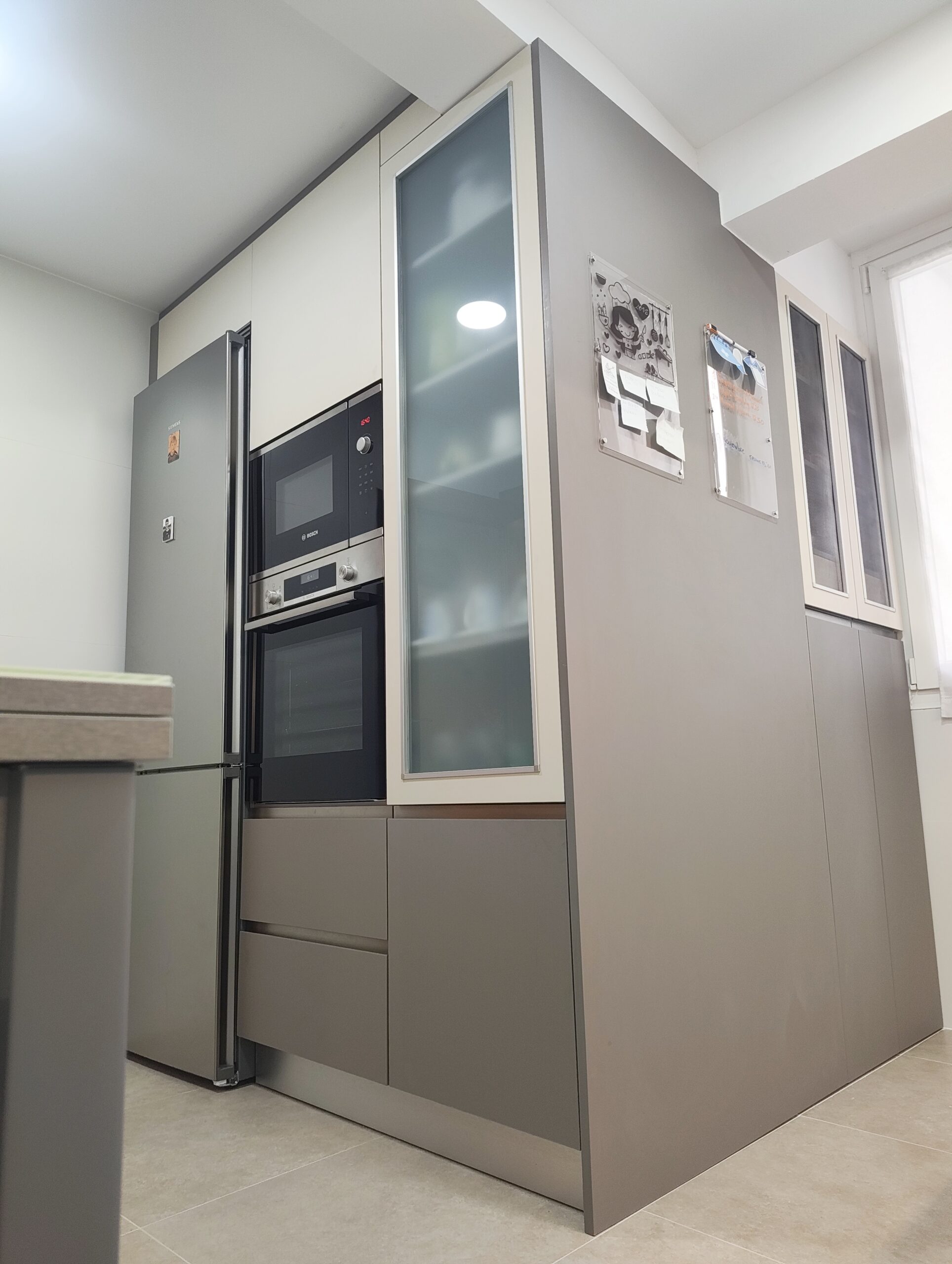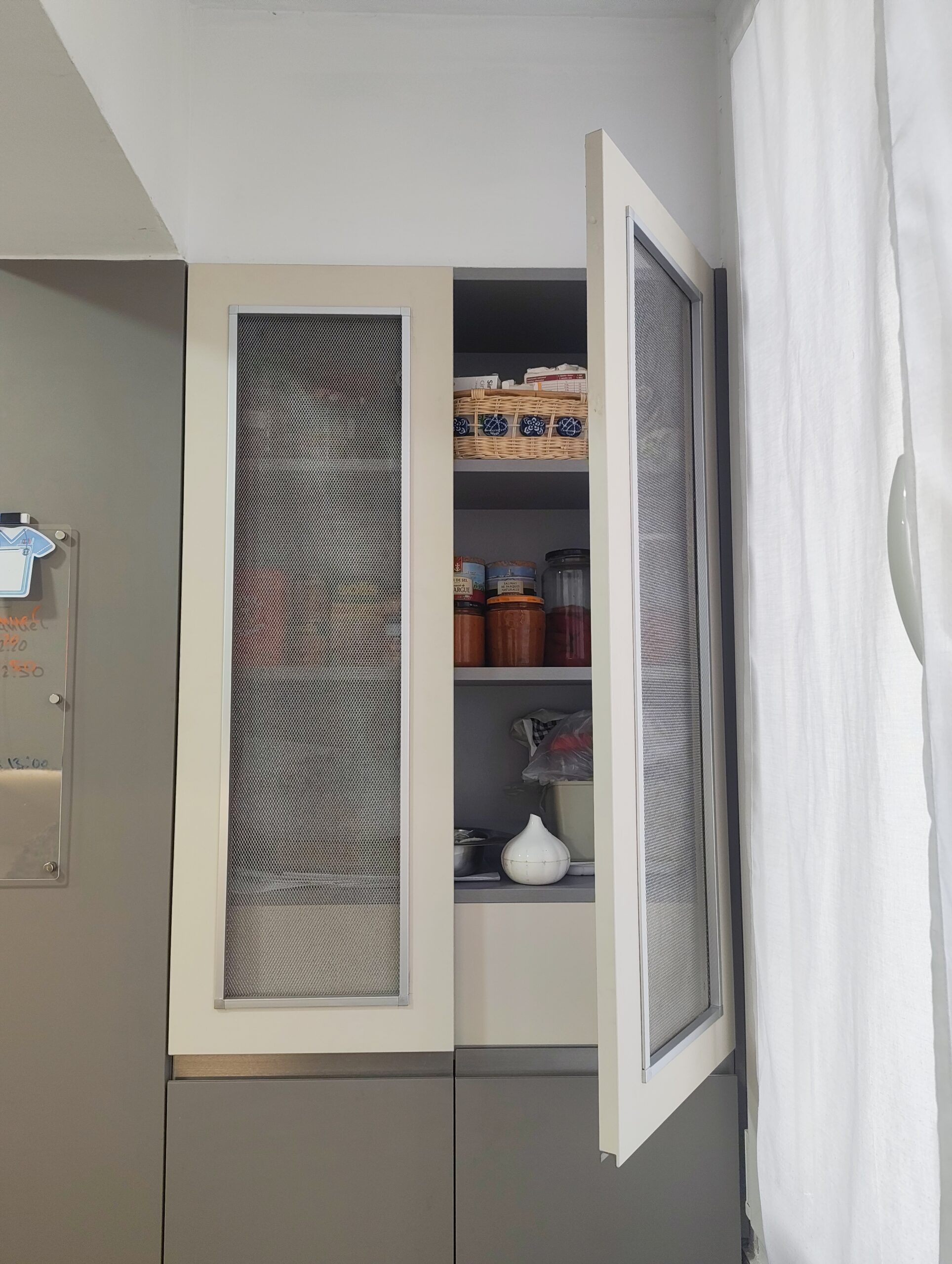 Finalmente, se ha integrado una fresquera aprovechando los huecos disponibles en la cocina. Cuenta con una rejilla superior que favorece la conservación de los alimentos y una zona inferior destinada al almacenaje, maximizando así la funcionalidad del espacio.