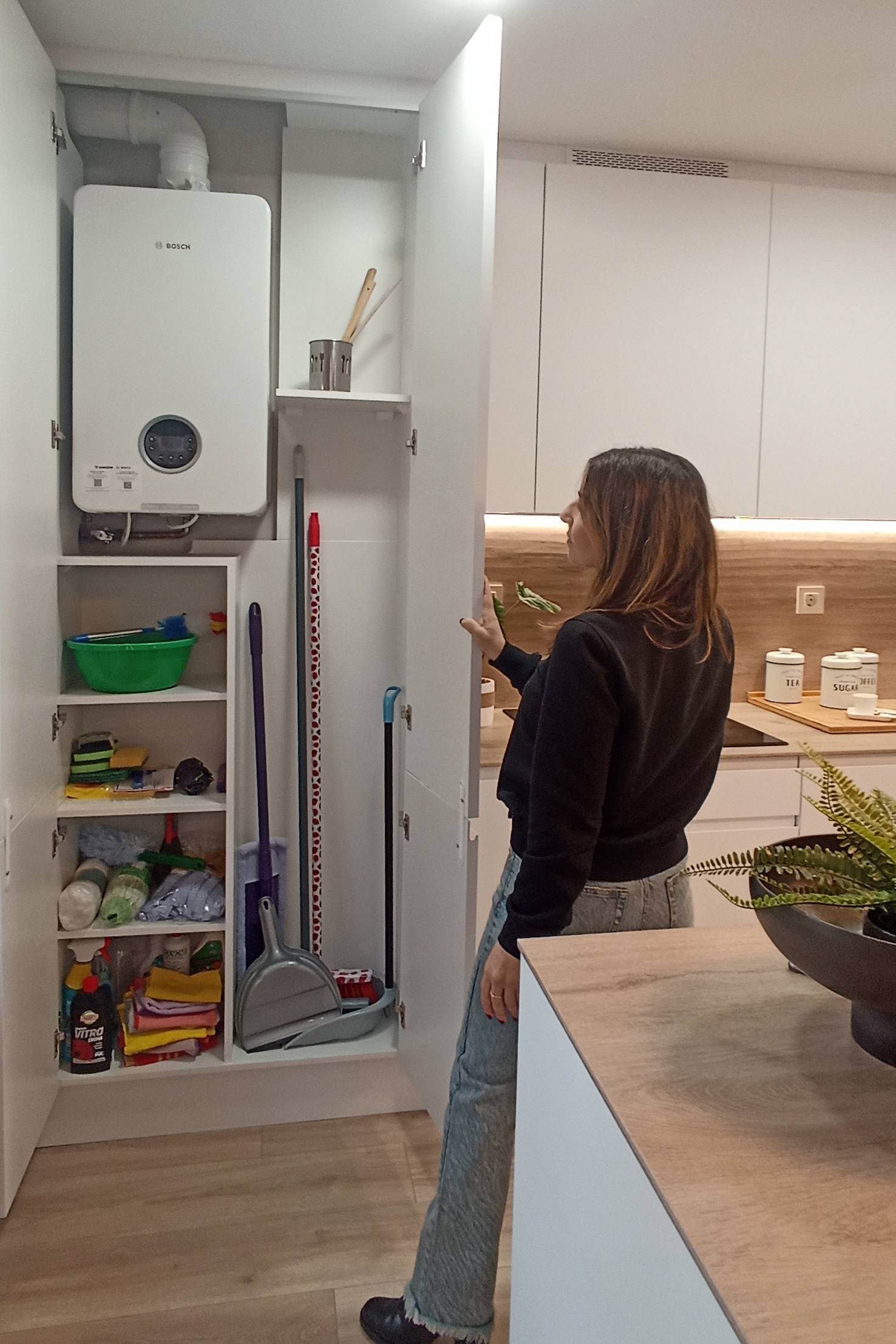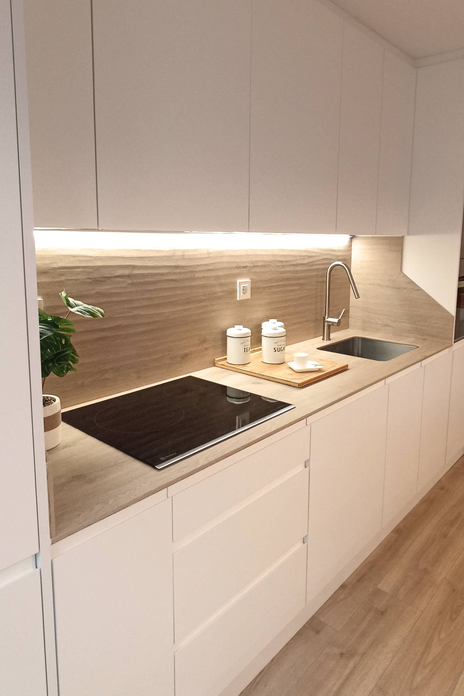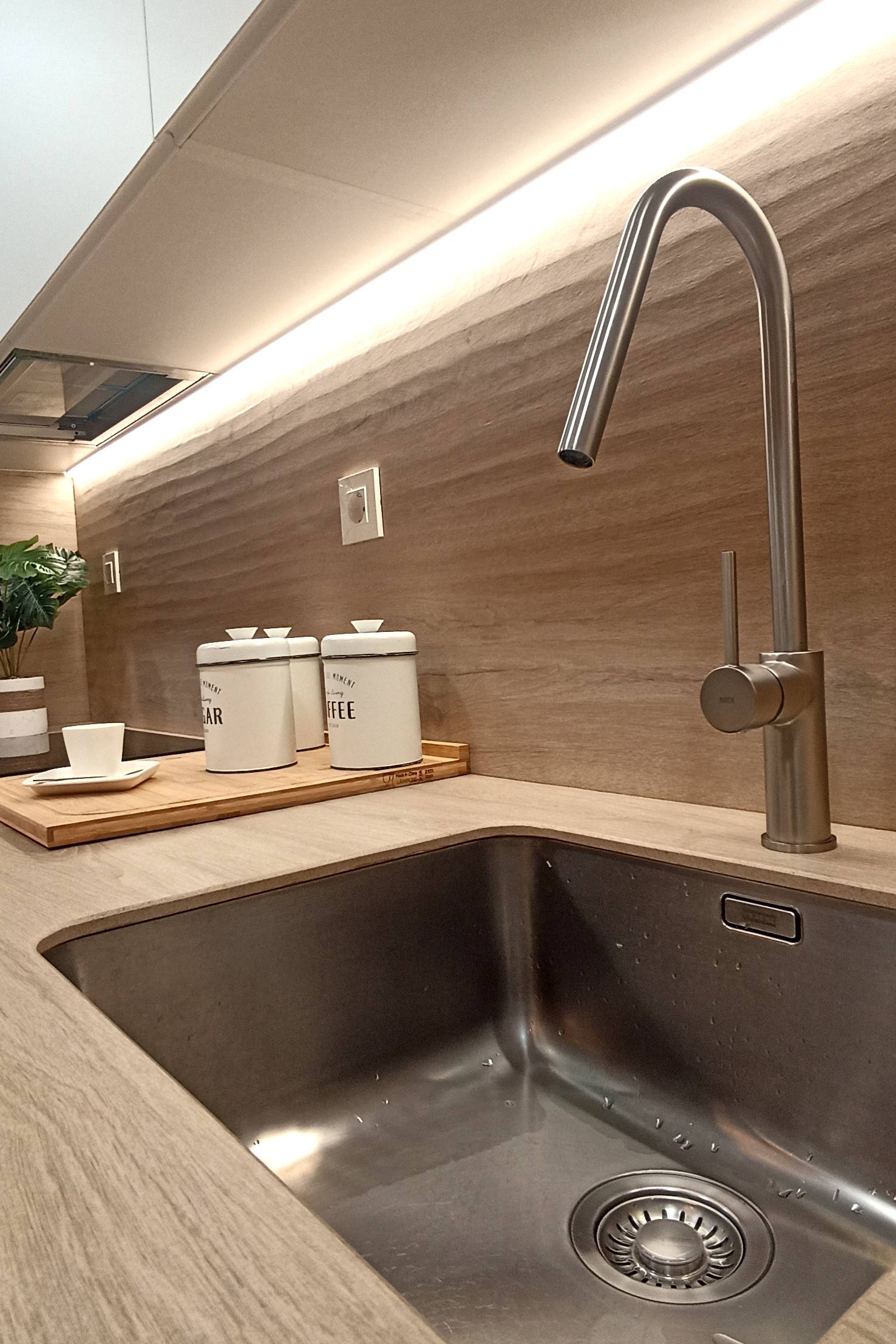 En esta cocina con isla incluimos una mesa del mismo material que la encimera: @sapienstone Rovere Busksin de 1,2 cm de grosor. Es una opción de diseño bastante popular en las cocinas modernas porque consigues funcionalidad y versatilidad.