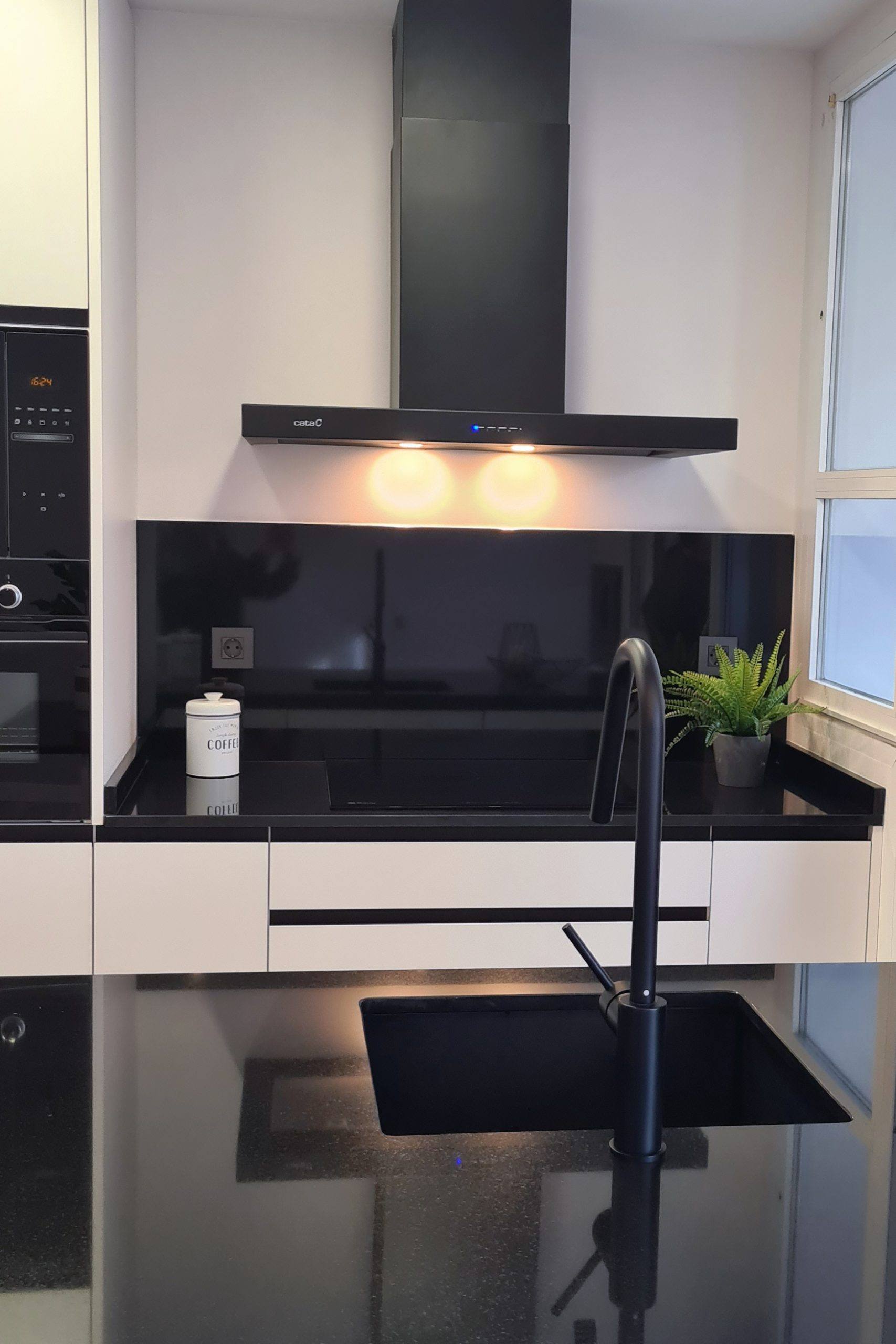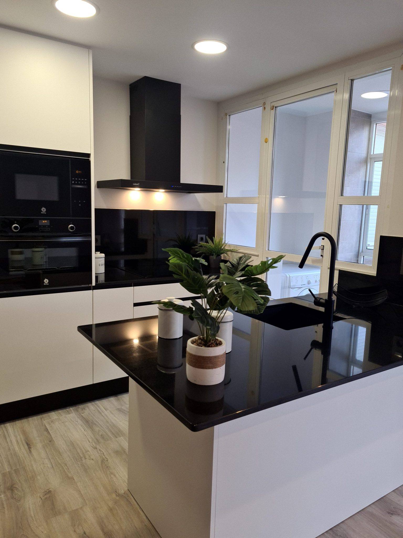 Una cocina negra y blanca, combinación irresistible