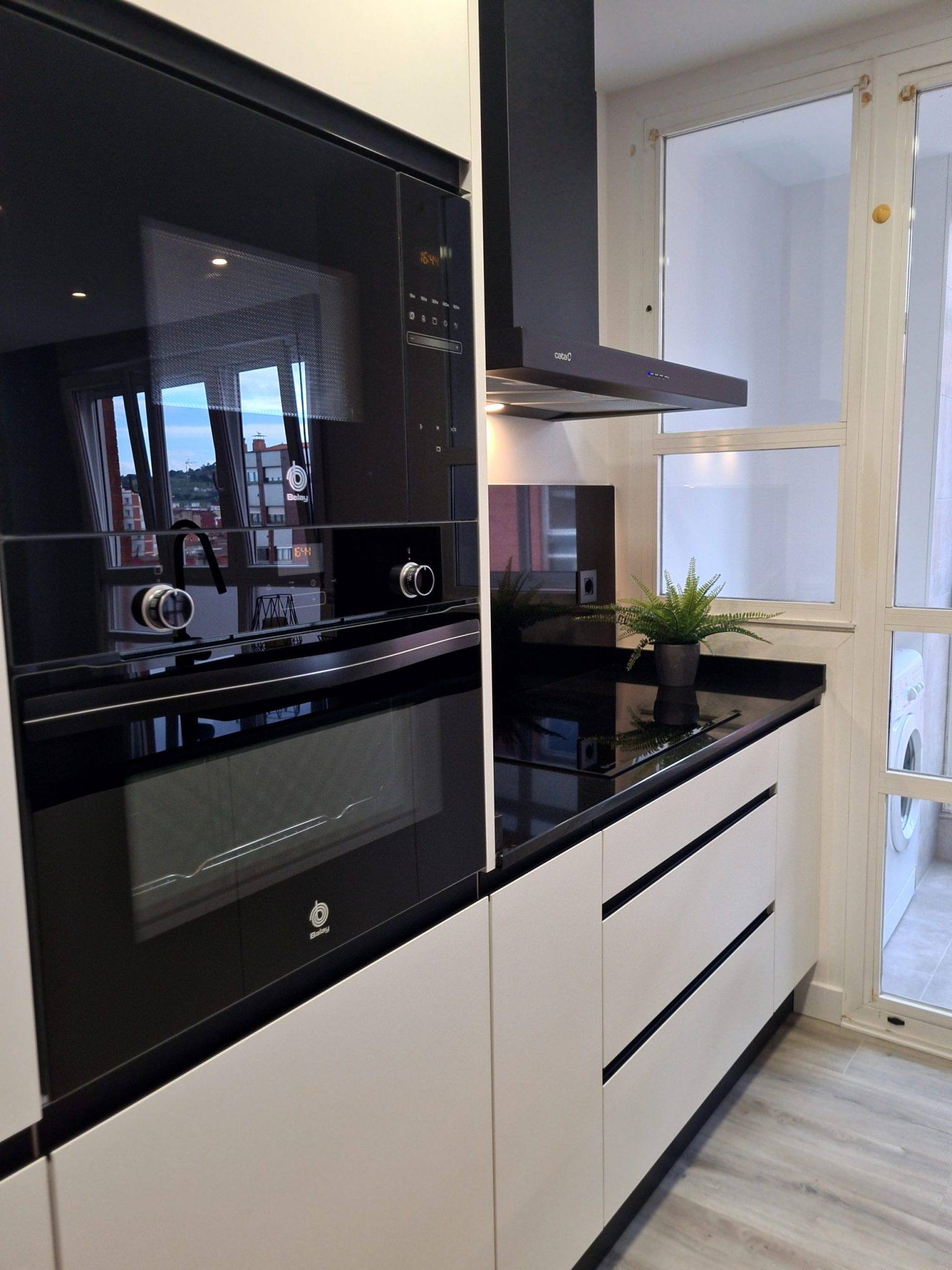 La elección de los electrodomésticos también importa. En esta ocasión, optamos por los negros de la colección cristal de Balay, seguiendo la armonía del diseño