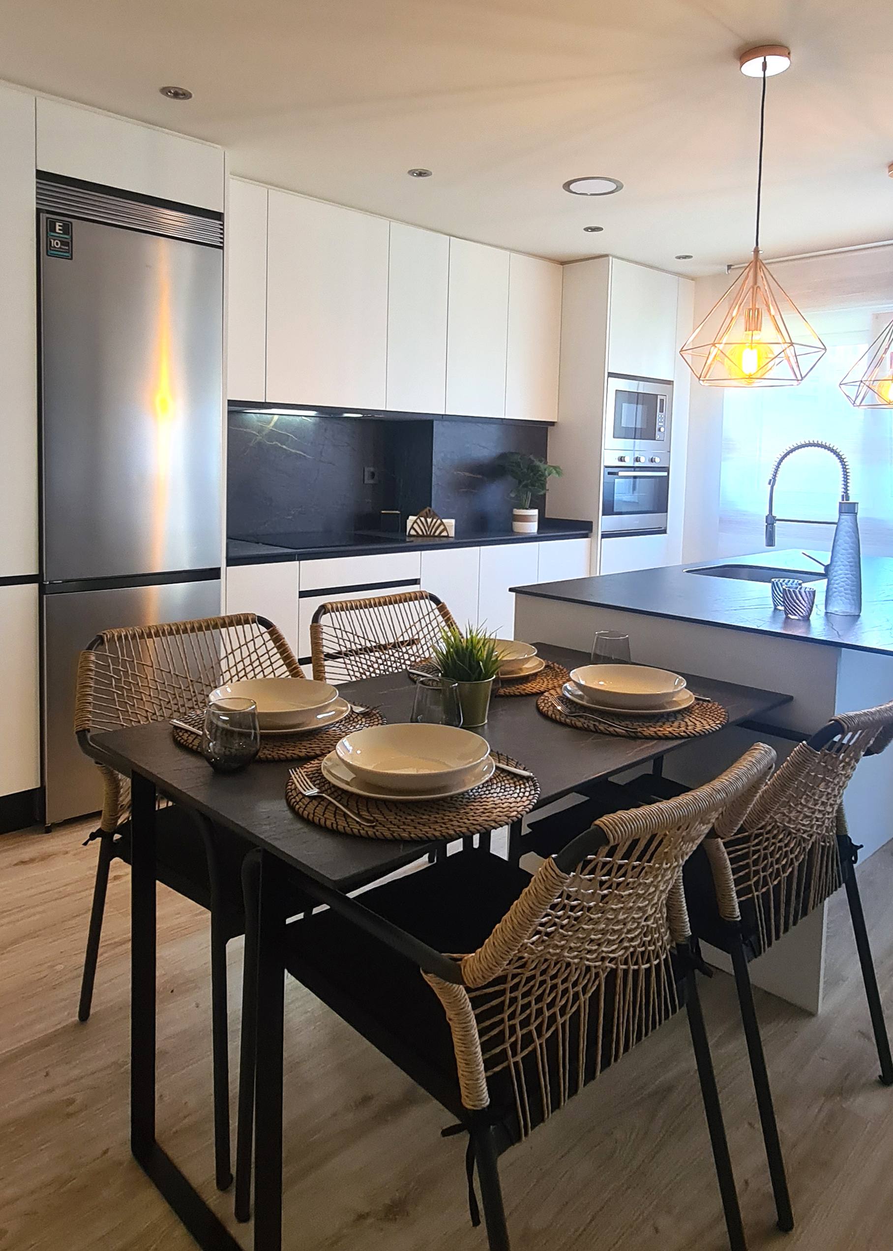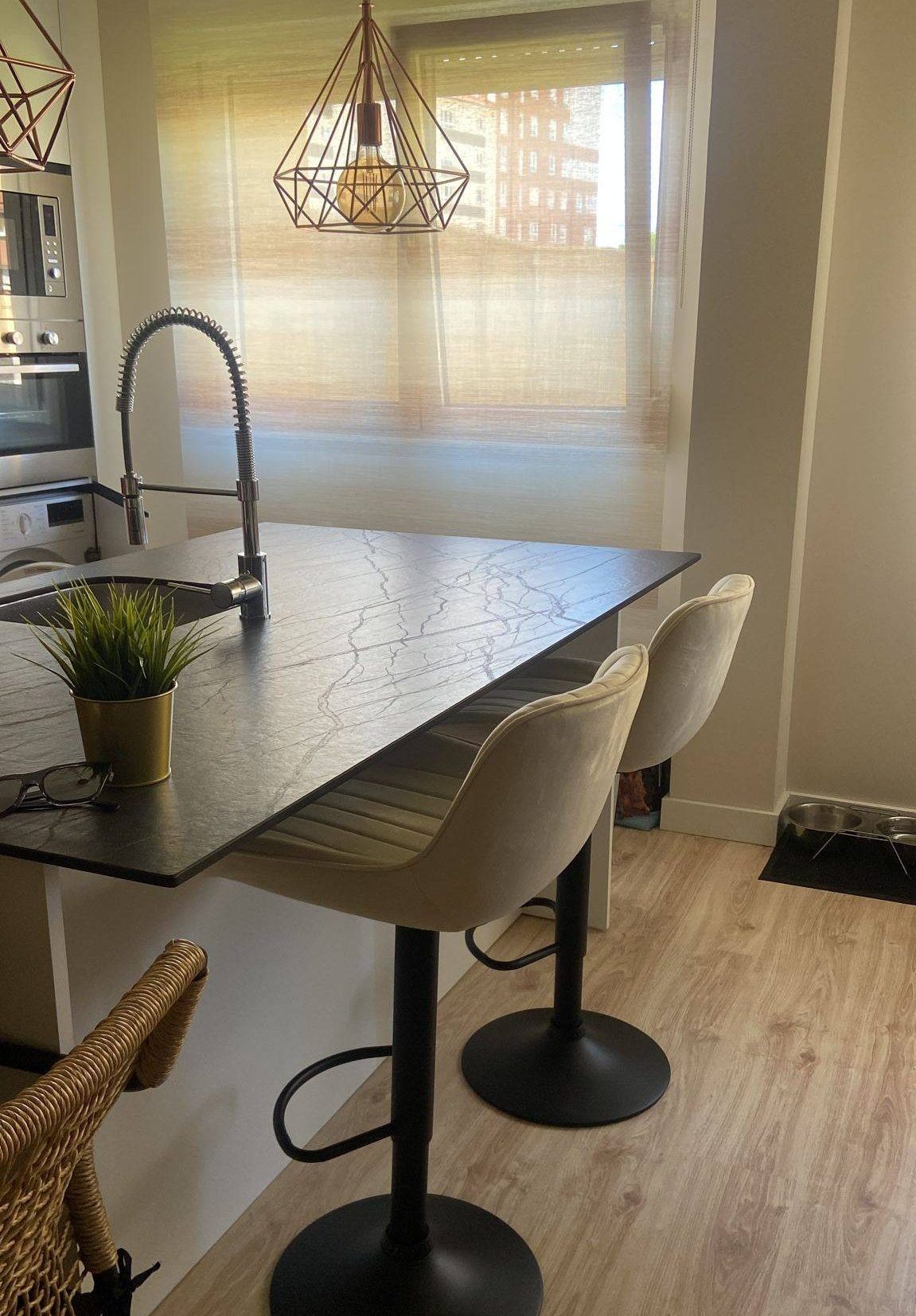 Una cocina con barra de desayuno es una excelente manera de aprovechar el espacio en cocinas pequeñas, ya que no ocupan tanto espacio como una mesa y sirven de zona de desayuno o comida rápida.